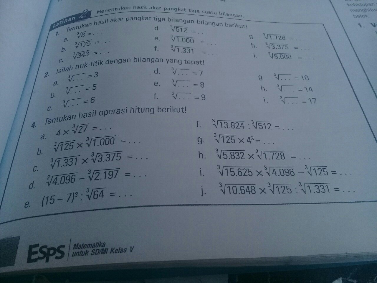 Hal ini juga berlaku pada bilangan berpangkat tiga. Akar tiga dari 1331 = 11. Tentukall 133| hasil akar pangkat tiga bilangantilangan betikuk! Sudah dijelaskan bahwa operasi perpangkatan merupakan perkalian berulang dengan unsur yang sama. Untuk mengetahui cara menghitung akar kubus atau akar kuadrat, angka hanya memakai operasi. Bilangan kubik antara 1000 dan 2000, antara lain: 1331 (113) dan 1728 (123). Misalkan kita akan mencari akar pangkat tiga dari bilangan 123. Berapa akar pangkat 3 dari 3375? Cara menghitung akar pangkat 3 dengan cepat dan benar. Untuk memudahkan perhitungan ini, maka kita harus hafal pangkat tiga dari angka 1 sampai 9. Manfaat dalam penelitian tindakan kelas ini . Bilangan pangkat tiga dari 8 adalah.